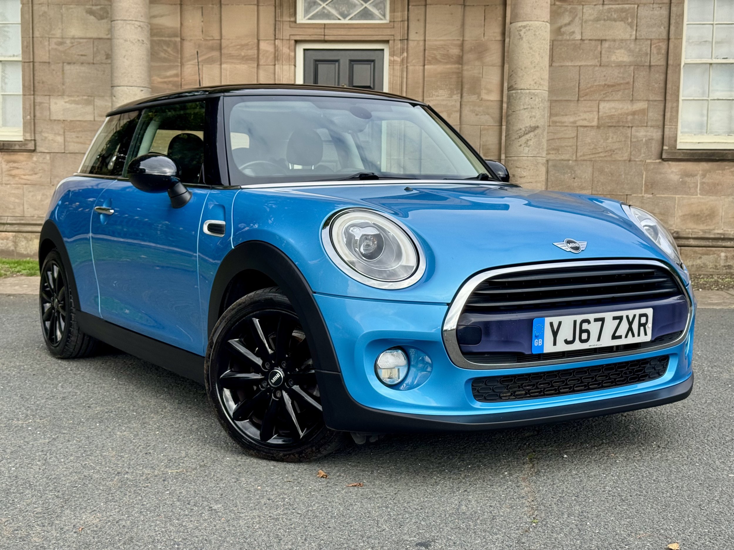 A beautifully cared-for and genuinely cherished example in Ice Blue (Duck Egg Blue) with Black Cosmos cloth interior. Originally supplied by Dick Lovett Mini Swindon, first registered to Honda Europe, and owned by the same lady owner since 2014. Comes with a full, detailed service history – 12 stamps in the book, mostly Mini main dealer, the most recent by a respected Mini specialist.